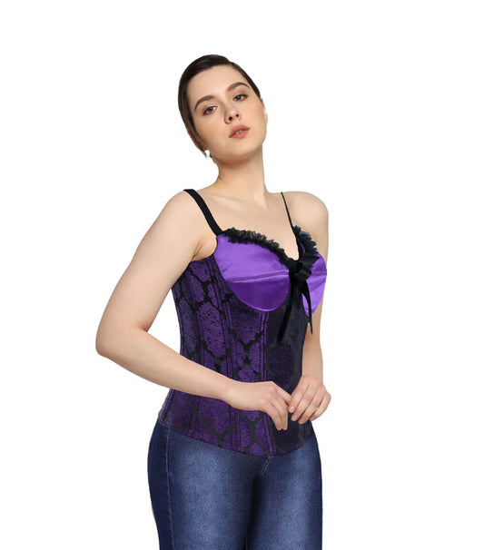 Bat Wing : Black Velvet & Purple Brocade Corset Top