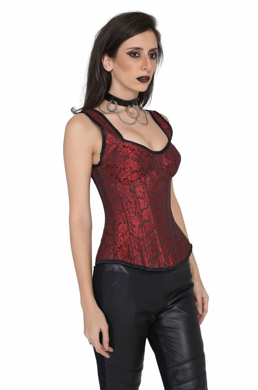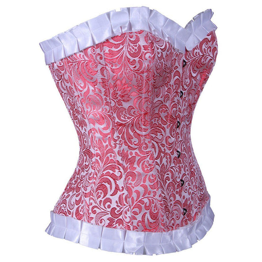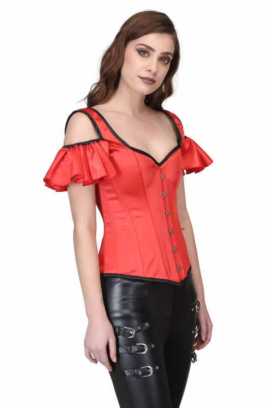 Gothic Waist Frill Steel Boned Overbust Corset with shoulder support