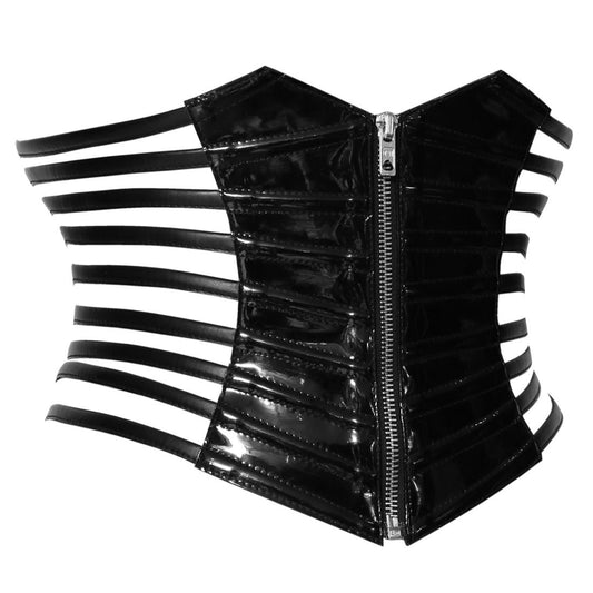 Black Steel Boned Waist Training Genuine leather Underbust Corset