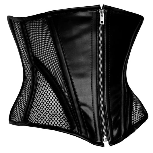 Gothic Punk Fetish Waist Chincher With Mesh & Pu