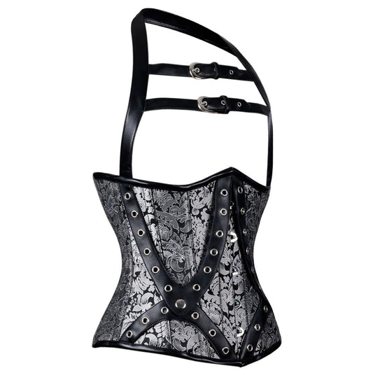 Webily Haltered Steampunk Underbust Corset Coffee Black